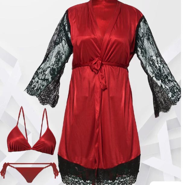• This is the gorgeous, extremely beautiful lace bridal robe, made of burgundy (wine) color stretch satin.